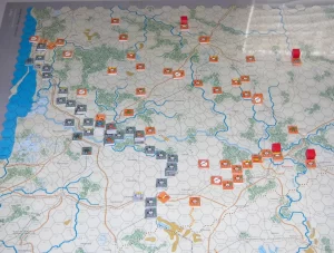Cinque i set di pedine/markers. Valori chiari, classici, senza fronzoli. Uniche immagini, quelle di aerei e camion rifornimenti; forse qualche mezzo corazzato ci stava……