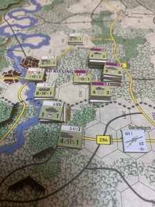 - stacking; il. limite di raggruppamento è fissato in Steeps che per il Patto di Varsavia sono 9 mentre quello NATO 4, riferiti alle unità di manovra che possiedono il marker (segnalini con numeri da 1 a 8). Può significare che con unità ridotta ad 1 step, il Patto può avere stacking in un esagono di 18 pezzi (9 unità + relativi 9 marker)! In genere, durante la mia breve prova dello scenario, ho manovrato con Stack di 6 pezzi è già è stato difficile non causare rovesci sulla mappa.