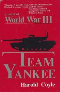 Team Yankee è un romanzo techno-thriller scritto nel 1987 da Harold Coyle, allora maggiore dell’Esercito degli Stati Uniti. Ambientato durante la Terza Guerra Mondiale, come descritto nel romanzo di Sir John Hackett “The Third World War: The Untold Story”, il romanzo segue la squadra corazzata dell’Esercito degli Stati Uniti, grande quanto una compagnia, in combattimento contro l’Unione Sovietica dopo l’invasione dell’Europa occidentale da parte del Patto di Varsavia. Mentre il libro di Hackett enfatizza la strategia e la politica mondiale, quello di Coyle racconta le esperienze degli equipaggi dei carri armati e dei fanti che combattono in prima linea.